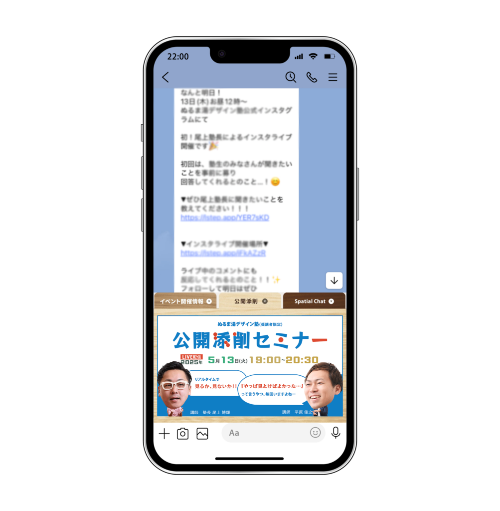 視覚的なインパクト を重視し、講師の写真や大見出しを コミカルなテイスト に仕上げました。 一方で、講師のセリフには 強いメッセージ性 を持たせ、「今こそリアルタイムで学ぶべき」 という意識を訴求しています。