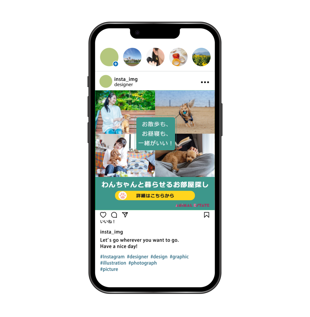「ペットとの暮らしをもっと身近に」をテーマに、温かみのあるデザインと直感的に伝わるレイアウトを意識しました。「ペット可の賃貸物件を探している人」が、犬との幸せな日常をイメージしやすい写真とキャッチコピーを使用しています。