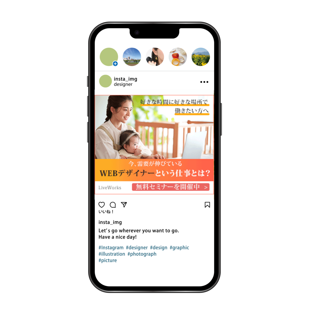 WEBデザインに興味がある方へ向けた無料セミナーのご案内バナーです。今、需要が高まっているWEBデザイナーのお仕事。好きな時間や場所で働ける魅力について、やさしく学べるセミナーであることが伝わるよう、柔らかい印象になるように制作しました。